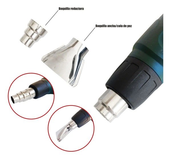 Incluye 2 boquillas deflectoras, ideal para concentrar el calor en áreas específicas.